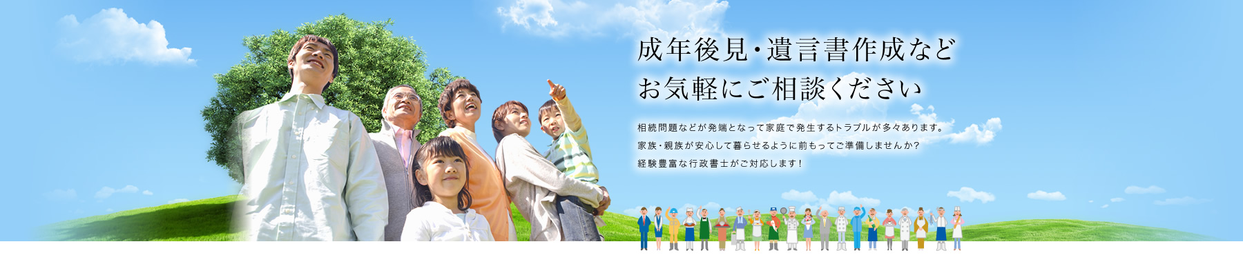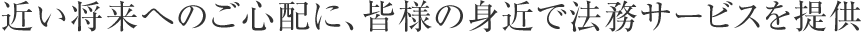 近い将来へのご心配に、皆様の身近で法務サービスを提供しておりますので、お気軽にご相談下さい。